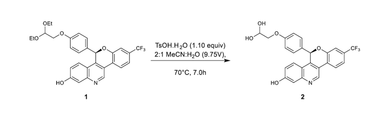 Figure 1. Acetal Deprotection of Compound 1 [Org. Process Res. Dev. 2026, 30, 2, 363–371. Copyright © 2026 American Chemical Society]