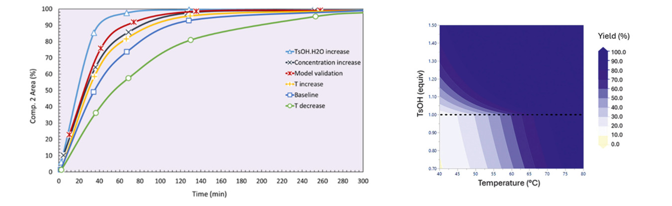Figure 2. Results of screening reactions (Left) and surface response plot from model (right) [Org. Process Res. Dev. 2026, 30, 2, 363–371. Copyright © 2026 American Chemical Society]